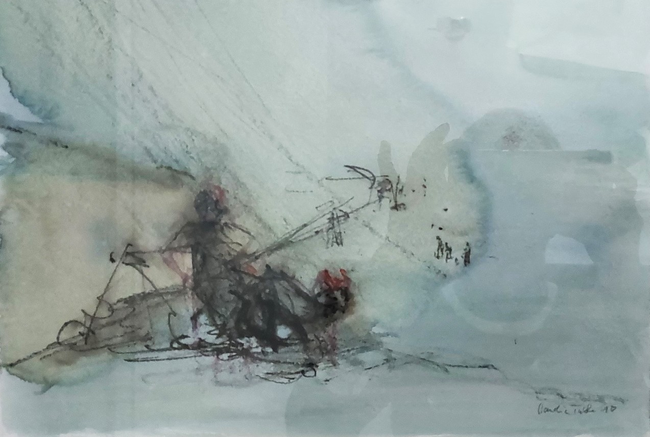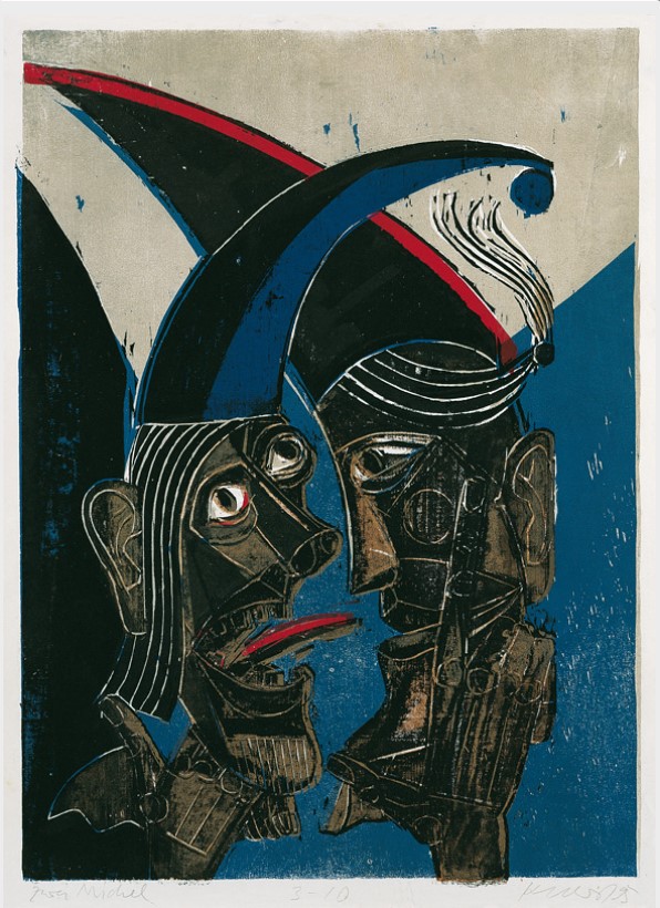 Diese Haltung des Künstlers ist in den letzten Jahrzehnten nicht nur unverändert geblieben, er hat sie vielmehr stärker akzentuiert. Insofern haben sich auch die Gegenstände und Stoffe seiner bildnerischen Auseinandersetzungen nicht verändert, und das heißt, er ist ständig auf der Suche nach dem eigenen Ich und dessen Ort in der Gegenwart, nicht als Weltverbesserer oder gar Besserwisser, vielmehr als zunehmend Betroffener, als ein Jemand, der als Künstler wie als Mensch sich, in den Strudel der Geschehnisse hineingerissen, erkennt und sich fragt: Bin ich noch in der Lage, ich selbst zu sein, eigene Ansichten auszubilden, selbst zu entscheiden oder müsste ich erkennen, zunehmend manipuliert zu werden und sehenden Auges einfach mitgespült zu werden, nicht in der Lage zu sein, mit den Mitteln des Künstlers Zeichen zu setzen, Aufmerksamkeit zu erregen, zu sensibilisieren, vielmehr gefangen zu sein? Dagegen setzt er die Befreiung, den Ausbruch, das Bemühen, die Freiheit zu suchen.