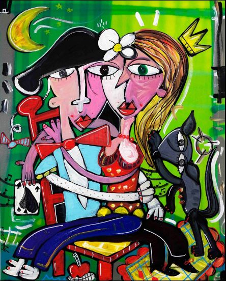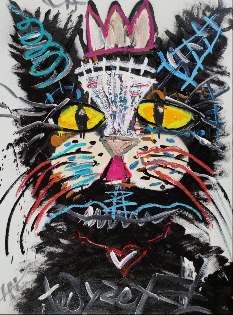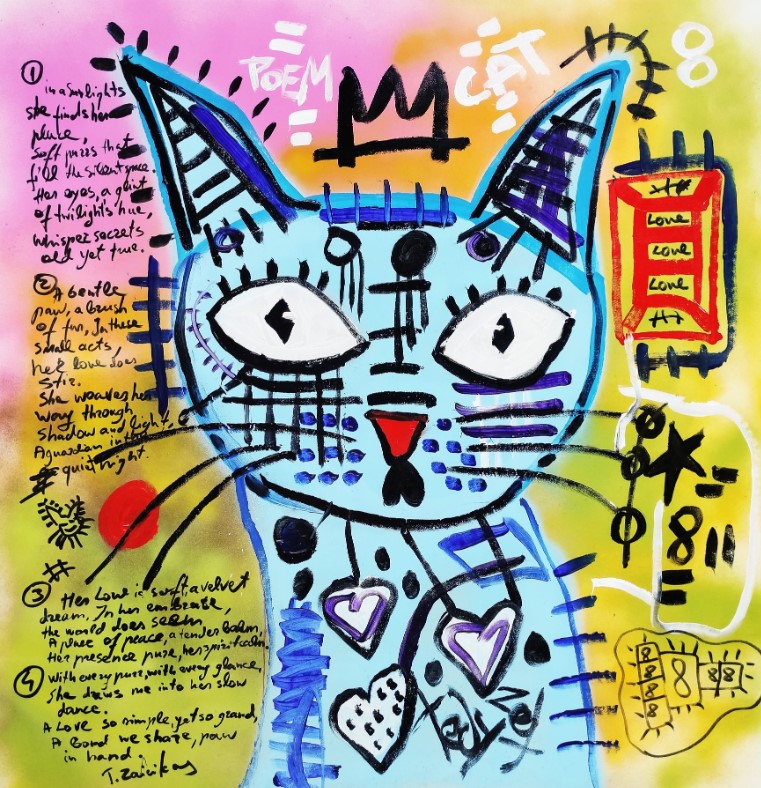 Gedicht Katzenliebe, Öl auf Leinwand, 80 x 80 cm, 2024