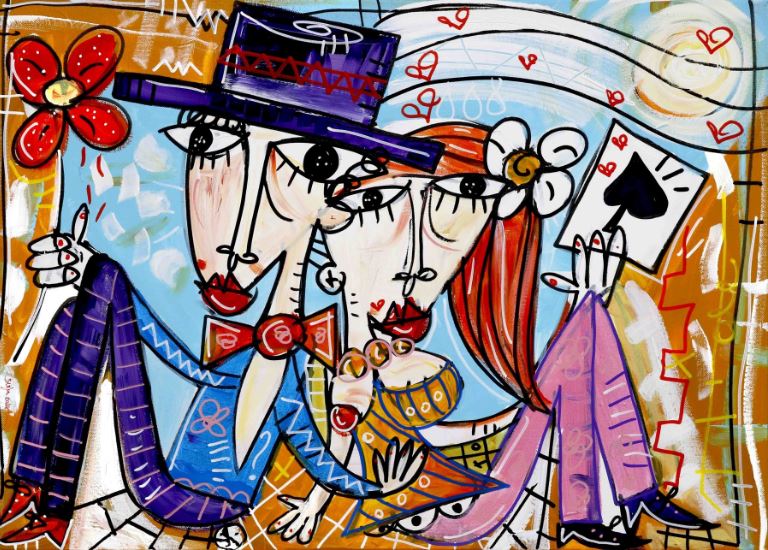 Schwebende Liebe #2, Acryl auf Leinwand, 80 x 120 cm, 2023